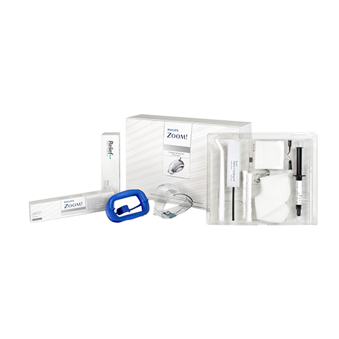 Zoom Chairside Whitening Kit - 6% Perossido di idrogeno + trattamento domiciliare NiteWhite 16% Perossido di carbamide. Codice ZMZME2691 Philips Zoom La prima soluzione Zoom luce attivata professionale con concentrazione al 6%, sbianca fino a 6 tonalità in un’ora, ridotta sensibilità. Test clinici hanno dimostrato che già dopo il primo trattamento, grazie a Philips Zoom, i denti possono essere schiariti fino a 6 tonalità. Il 50 % dei pazienti, dopo il trattamento, ha riportato una tonalità pari a VITA B1 o addirittura più chiara. Rispetto ad un trattamento di sbiancamento senza lampada UV, anche dopo 30 giorni i denti risultano il 42% più bianchi.* Il gel Philips Zoom agisce grazie alla reazione foto-Fenton di perossido e ferro. La componente perossidica reagisce con il ferro generando radicali idrossilici, i cosiddetti “agenti sbiancanti”. La fotosintesi favorisce il rinnovo continuo del ferro reattivo, la produzione costante di radicali idrossilici, migliorando notevolmente il processo di sbiancamento. <b>Kit (per 2 pazienti) composto da:</b> » n.4 Siringhe di gel Zoom da 2.4 g cad. » n.2 Retrattori labiali IsoPrep® » n.2 Guide Light » n.2 Tray monopaziente ciascuno contenente: • n.1 Siringa Liquidam da 2.9 g • n.2 Whitening Accelerator PH Booster • n.2 Fogli di vinile • n.1 Portamascherine • n.2 Siringhe Take Home Gel da 2.4 g NiteWhite 16% • Cannula di aspirazione chirurgica • Olio di vitamina E • Rulli di cotone, garze e materiale isolante • Pennellini vari