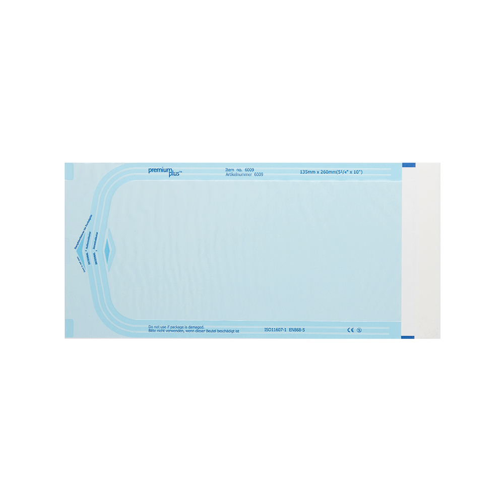 Buste per sterilizzazione misura 135x260 mm con triplo sigillo adesivo per proteggere il contenuto. <b>Indicazioni:</b> • Per avvolgere gli strumenti prima della sterilizzazione • Aiuta a organizzare gli strumenti • Barriera affidabile contro i contaminanti e conservazione sicura degli strumenti sterilizzati <b>Caratteristiche:</b> • Autosigillante: non necessita di termosigillatrice • Il finestrino in plastica blu aiuta a rilevare i fori di perforazione che potrebbero essere causati da strumenti irregolari • L'indicatore colorato di facile lettura per il vapore assicura che il contenuto sia stato elaborato correttamente • Con indicatori interni ed esterni • Carta di grado medico da 70 gsm • Pellicola in polipropilene Conforme allo standard BS EN 868-5 e ISO 11607-1 <b>Durata di conservazione:</b> Prima della sterilizzazione – 3 anni Post sterilizzazione – 6 mesi Confezione: 200 pezzi sostituisce 10009460
