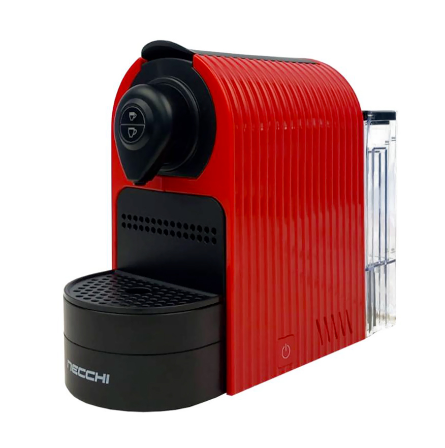 Macchina per caffè espresso completamente automatica - compatibile Nespresso. La macchina da caffè Necchi è compatta, colorata e user-friendly. E’ facile da usare grazie all’interfaccia semplificata con 2 pulsanti “One Touch”. Questa macchina da caffè con sistema a capsule Nespresso, consente di ottenere risultati di elevata qualità grazie alla pressione a 19 bar. Il suo design trendy, i colori fantasiosi e le finiture di alto livello sono perfetti per tutti i giovani amanti del caffè. • Pressione 19 bar • Potenza: 1400w • 2 lunghezze in tazza selezionabili con il tasto “One Touch” • Spegnimento automatico dopo 9 minuti • Serbatoio dell’acqua rimovibile da 0,8 l • Vassoio raccogli goccia • Sistema inserimento capsula facilitato • Espulsione automatica della capsula • Tasto On-Off • Capacità contenitore 9 capsule • Misure: 23cm altezza, 21,5cm profondità, 12cm larghezza.