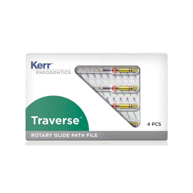 Traverse sono i nuovi strumenti rotanti in NiTi di Kerr, appositamente disegnati per la negoziazione del canale radicolare e la creazione del sentiero guida. Aiutano a ridurre potenzialmente il rischio di rottura degli strumenti per la sagomatura e il numero degli stessi necessari per effettuarla. Compatibili con ogni tecnica di strumentazione/sagomatura del canale. Tutti gli strumenti sono monouso e pre-sterilizzati.