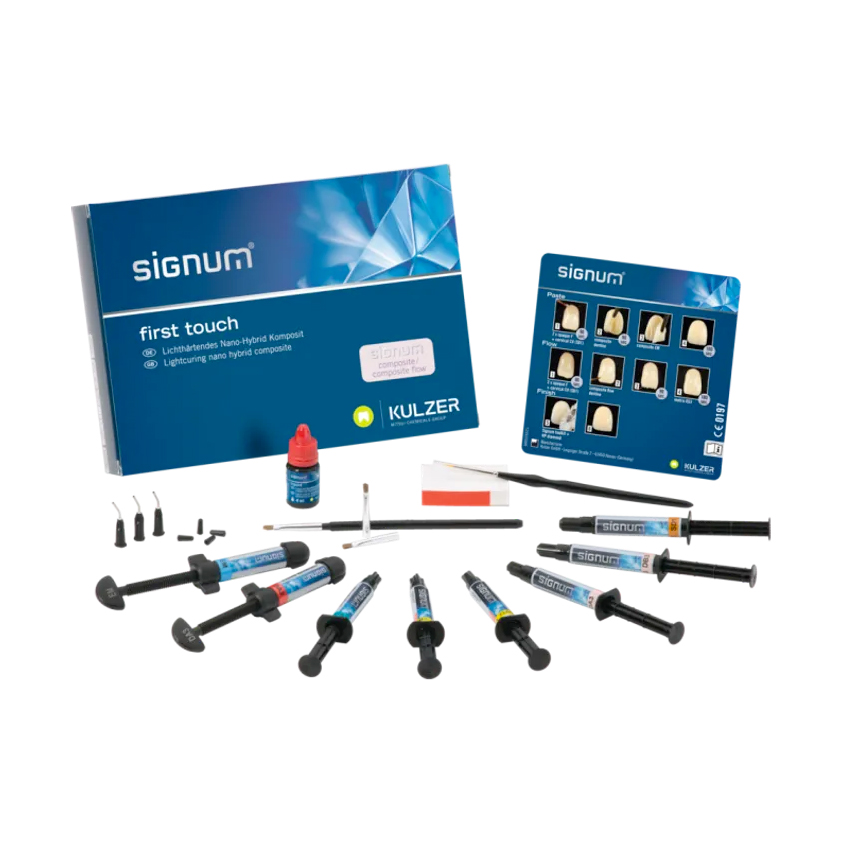 Il kit Kulzer Signum Composite First touch 66044563 è stato appositamente studiato per i principianti che desiderano creare faccette in composito estetiche per strutture e lavori telescopici utilizzando le tonalità VITA classical A3 e B3. Il set contiene componenti sia pastosi che fluidi per un comfort di lavorazione eccezionale, i materiali sono abbinati in modo ottimale per una stabilità del colore duratura, resistenza alla placca e resistenza all'abrasione. <b>Contenuto della confezione:</b> • 1x Siringa di Signum composite DA3 • 1x Siringa di Signum composite DB3 • 1x Siringa di Signum opaque F OA3 • 1x Siringa di Signum opaque F OB3 • 1x Siringa di Signum composite enamel (EM) • 1x Siringa di Signum matrix OT1 • 1x Siringa di Signum matrix SD1 • 1x Siringa di Signum matrix OS3 • 1x Signum liquido • Accessori vari