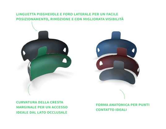 <b>Matrici sezionali in acciaio inossidabile ultrasottile con forma anatomica.</b> Le matrici sezionali Halo sono in acciaio inossidabile ultrasottile, da 0,038 mm, la loro forma anatomica assicura punti di contatto stretti a garanzia della longevitą del restauro. In particolare, la curvatura della cresta marginale consente un accesso ideale dal lato occlusale, riducendo il tempo di rifinitura. Disponibili nella versione Original per una migliore adattabilitą e brunitura, nella versione Firm, restistono alla deformazione e sono adatte per spazi interprossimali ristretti e, nella versione Firm non-stick, codificate per colore. Sono dotate di linguetta pieghevole e foro laterale per un facile posizionamento e rimozione con visibilitą migliorata. <b>Caratteristiche:</b> • Forma anatomica per punti di contatto ideali • La curvatura della cresta marginale consente un accesso ideale dal lato occlusale, riducendo il tempo di rifinitura • Linguetta pieghevole e foro laterale per facile posizionamento e rimozione con visibilitą migliorata • Matrici “Original” per una migliore adattabilitą e brunitura • Matrici “Firm” resistono alla deformazione e sono adatte per spazi interprossimali ristretti • Matrici “Firm nonstick“, codificate per colore • Le matrici “Original” e “Firm” sono in acciaio inossidabile ultrasottile da 0,038 mm HALO ORIGINAL MATRICI 5,5mm - confezione da 50 pz. - Cod. 5452 Ultradent
